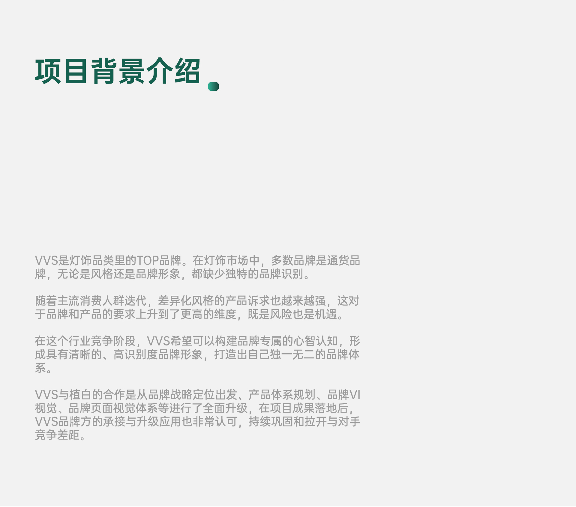 系。VVS與植白的合作是從品牌戰(zhàn)略定位出發(fā)、產(chǎn)品體系規(guī)劃、品牌VI視覺、品牌頁面視覺體系等進行了全面升級,在項目成果落地后,